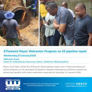 PUBLIC NOTICE: Ethekwini Mayor Welcomes Progress on 53 Pipeline Repair